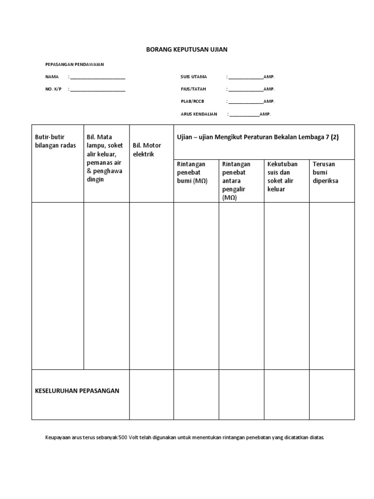 Contoh Borang Pengujian Kerja Elektrik